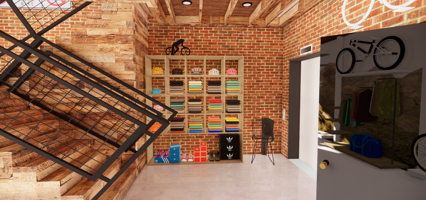 This was my final project as an interior design student. The assignment was to design a retail store in 1000 square foot space: include a bathroom and private office. 20 feet high walls, no budget.